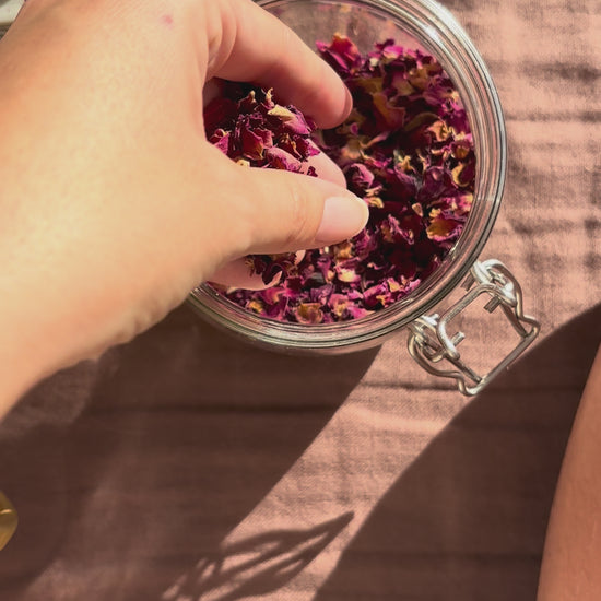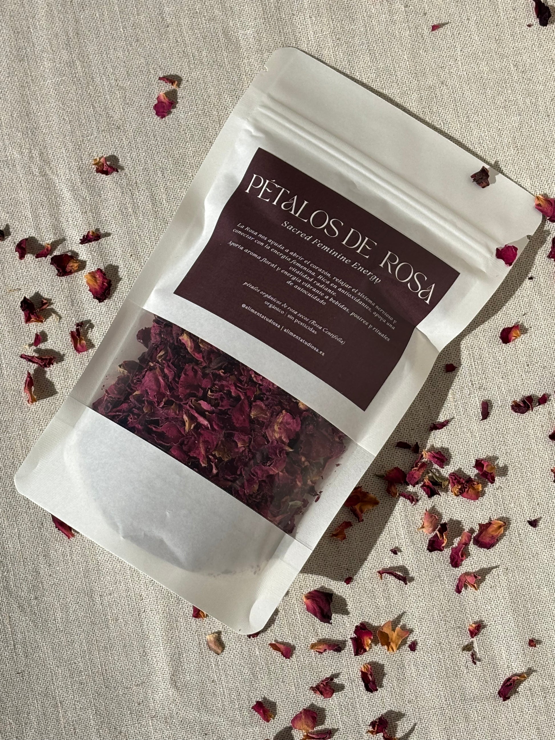 Honra a la Diosa que eres mientras nutres tu cuerpo. Nuestros pétalos de rosa son 100 % comestibles, cultivados de forma consciente, y llenos de la energía sagrada de la Rosa Centifolia.
